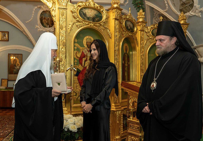 Патриарх Московский и всея Руси Кирилл встретился с супругой президента Сербии Тамарой Вучич в Патриаршей резиденции в храме святителя Филарета Милостивого «после Божественной литургии в Личине Святой Троицы».